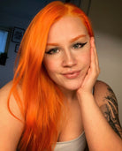 Tara Tangerine is a dazzling UV-reactive neon orange hair color that radiates your vibrant glow, catching eyes even under blacklighting.